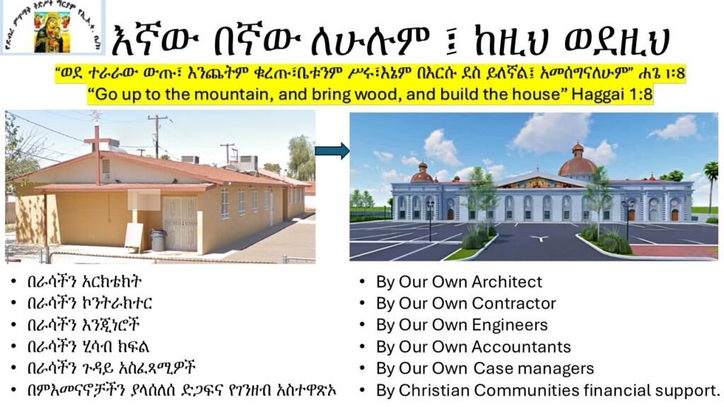We have opened up the opportunity for you to make your mark by participating in the construction work for St. Mary’s Ethiopian Orthodox Church in Phoenix, Arizona.